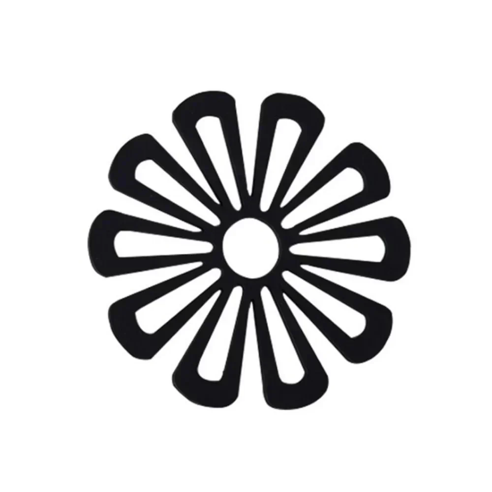 (ブラック) 鍋敷き おしゃれ 北欧 シリコン かわいい なべしき 耐熱 花 フラワー コースター 鍋敷 ホワイト ピンク 黒