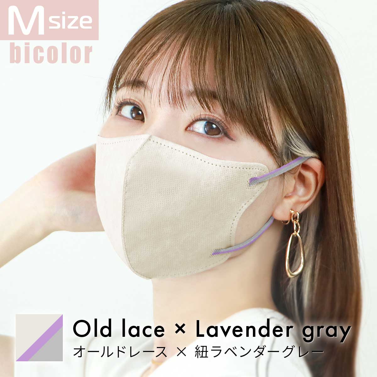 【Mサイズ】【オールドレース×ラベンダーグレー】立体マスク バイカラー 両面 同色 立体 不織布 カラー 血色 3Dマスク 3D マスク 2D 2Dマスク 美人 小顔 使い捨て カラーマスク 美 シルエット ジュエルフラップマスク 3Dデイリースタイル Jewel Flap Mask 公式 WEIMALL bwm3d5