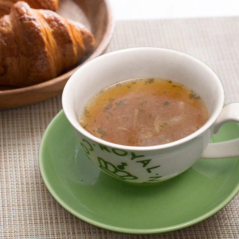 高級有機肥料による栽培と、甘味を引き立たせる製法により、玉ねぎの旨みを凝縮。化学調味料無添加で仕上げました。具材にはシャキシャキの玉ねぎが入っています。