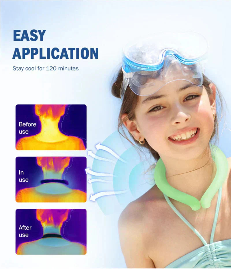 真夏の汗・熱中症対策に!心地良い温度で約60分~120分間"28度以下をキープ"してくれる、ネック用冷却グッズ。