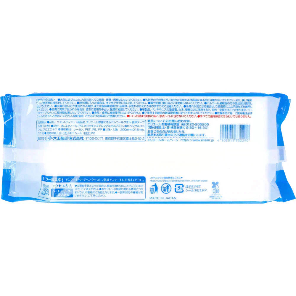 除菌ウェットシート エリエール 除菌できるアルコールタオル 食卓テーブル用 70枚入X12パック