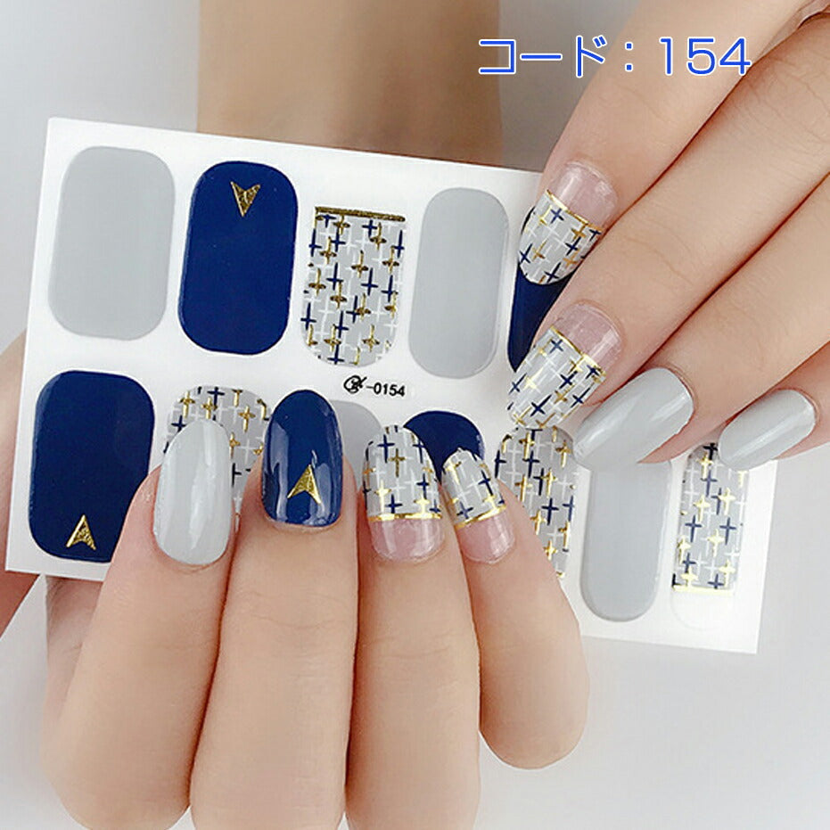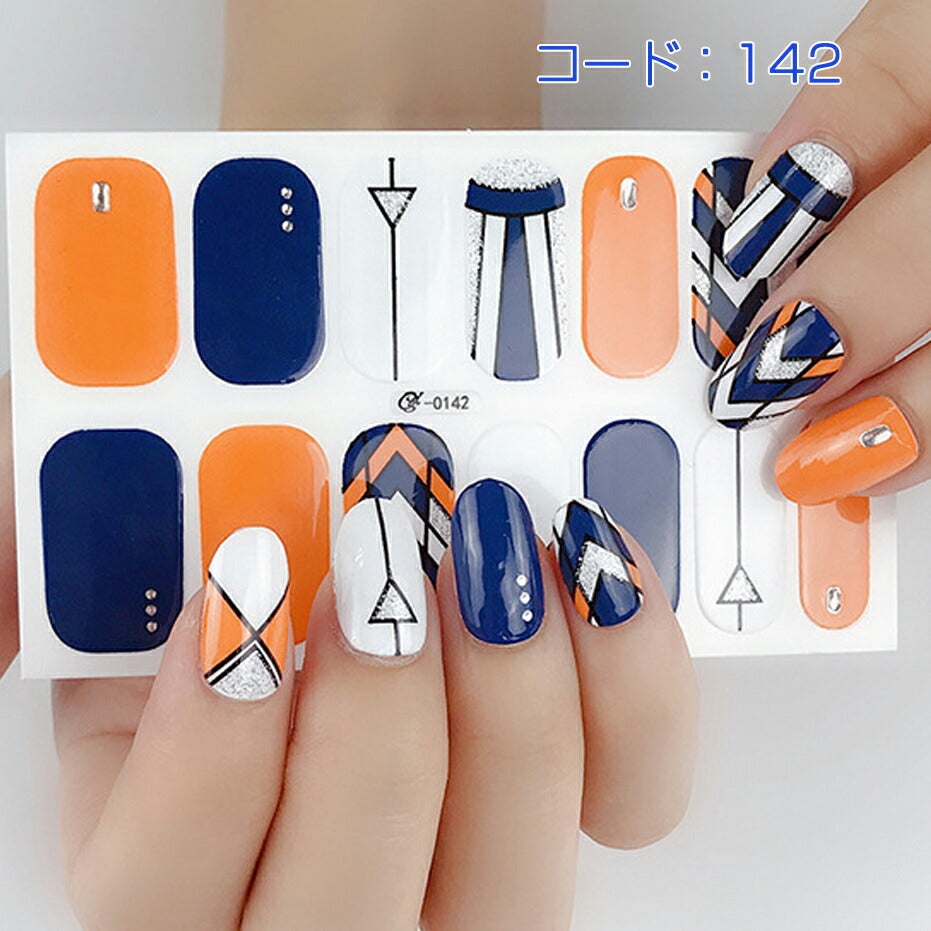 ネイルシール ハンド用 ブルー系 青 グレー オレンジ キラキラ お洒落 大人しい ファッション 韓国風 3D 全7色選べる 貼るだけ 花 しま ボード柄 手指爪用