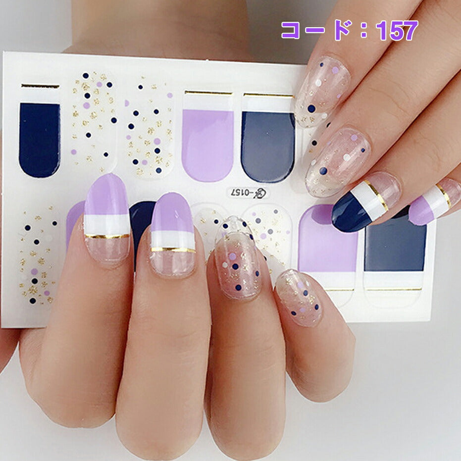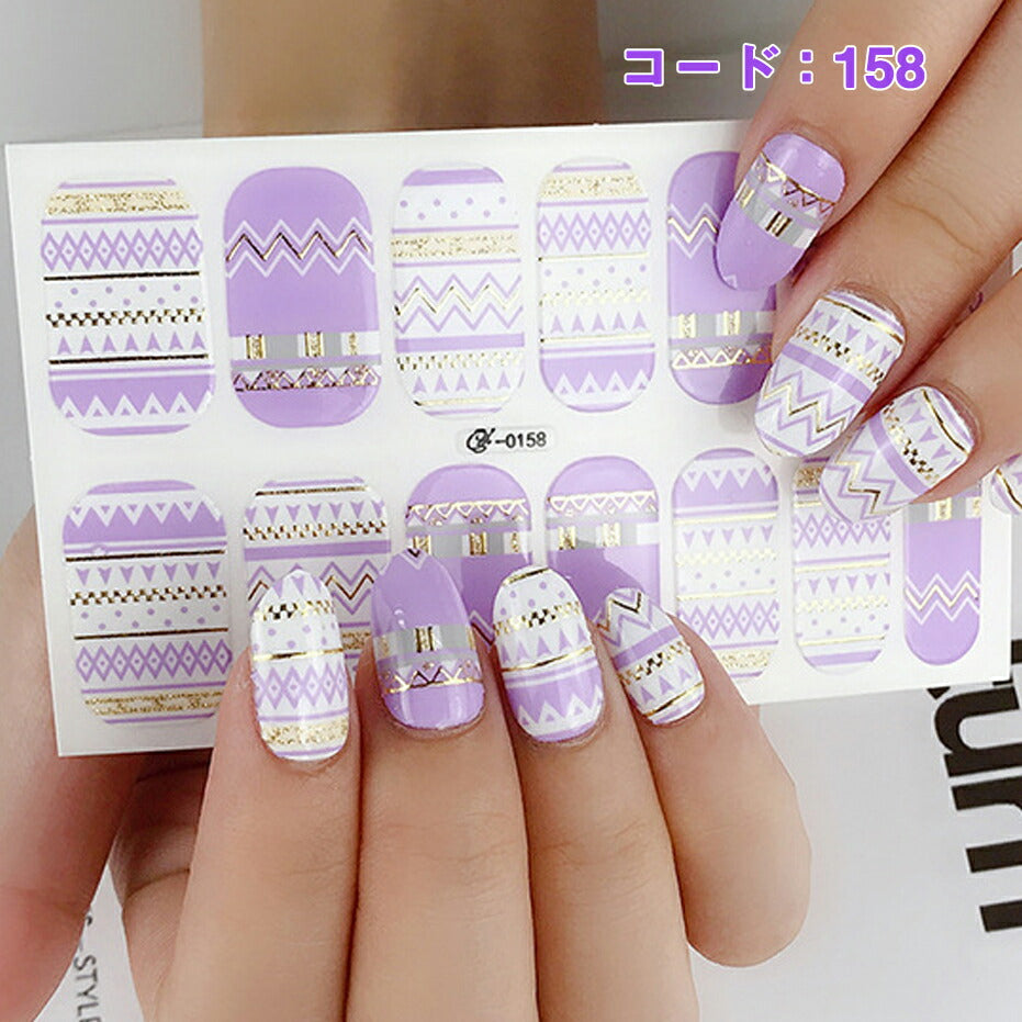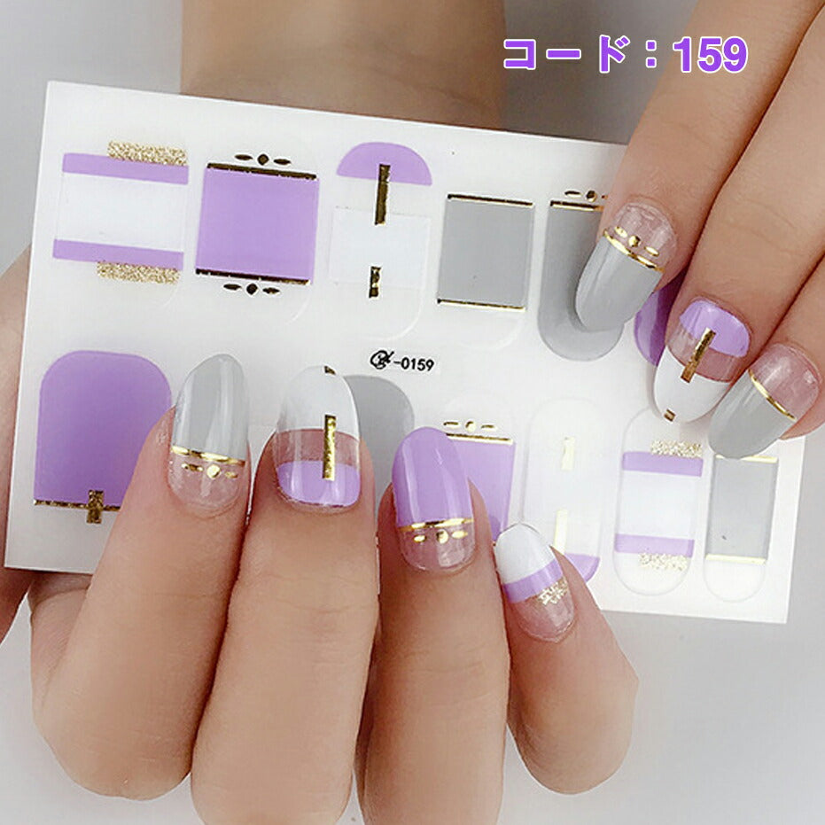 ネイルシール ハンド用 パープル系 紫 グレー ホワイト クリア キラキラ お洒落 大人しい 淑女 韓国風 最新作 3D 貼るだけ 花 しま ストーン柄 手指爪用