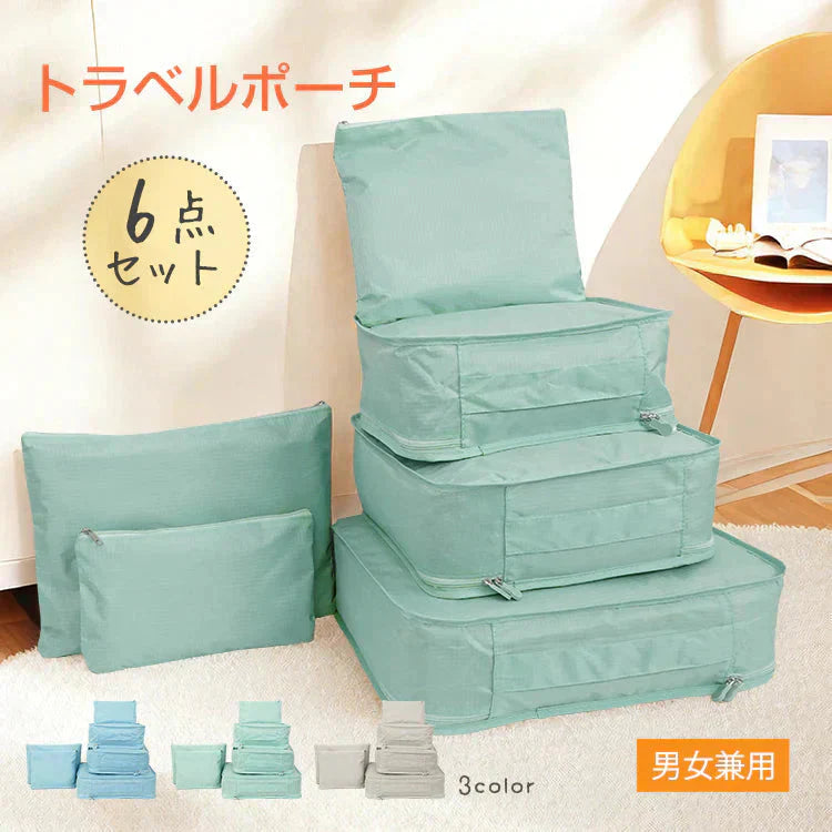 トラベルポーチ 「グリーン」 トラベルポーチセット セット 衣類 防水 アウトドア 旅行 化粧 お風呂 小物 洗面 衣類収納 大容量 海外旅行