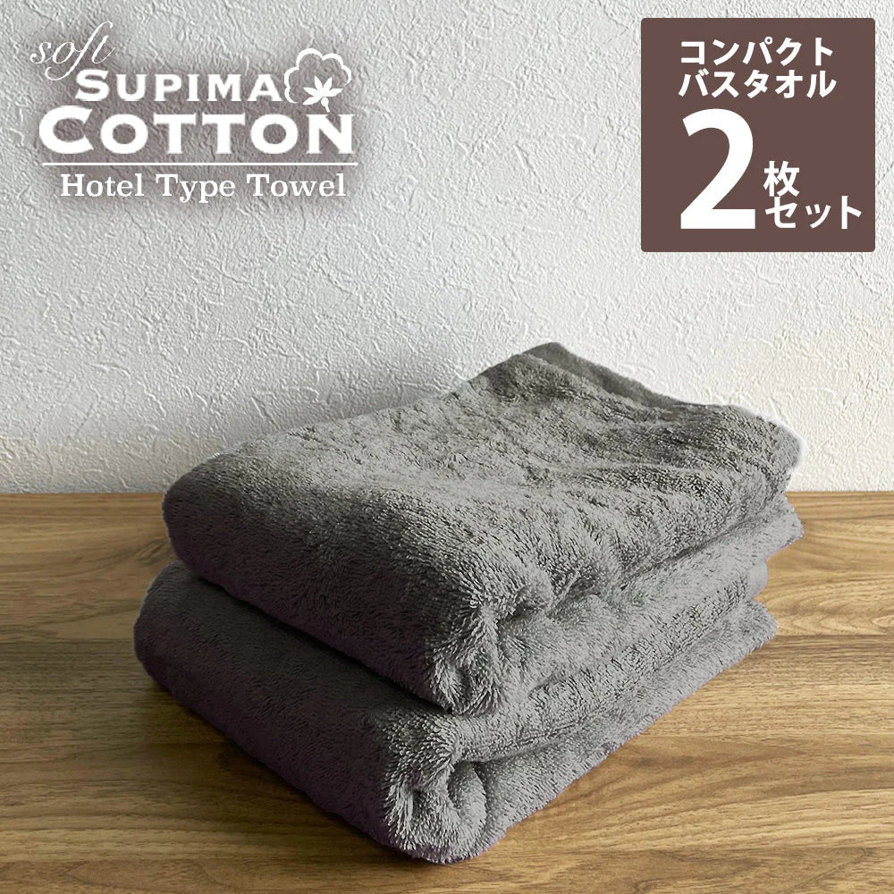 チャコールグレー ミニバスタオル スーピマコットン ホテルタイプタオル 同色2枚セット 【メール便送料無料】