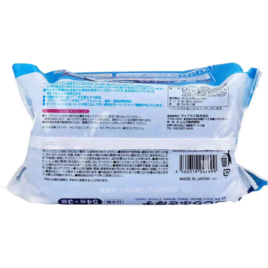 ベビー用おしりふき レック 水99.9% 水分たっぷりおしりふき厚手 54枚X3個入 X8パック