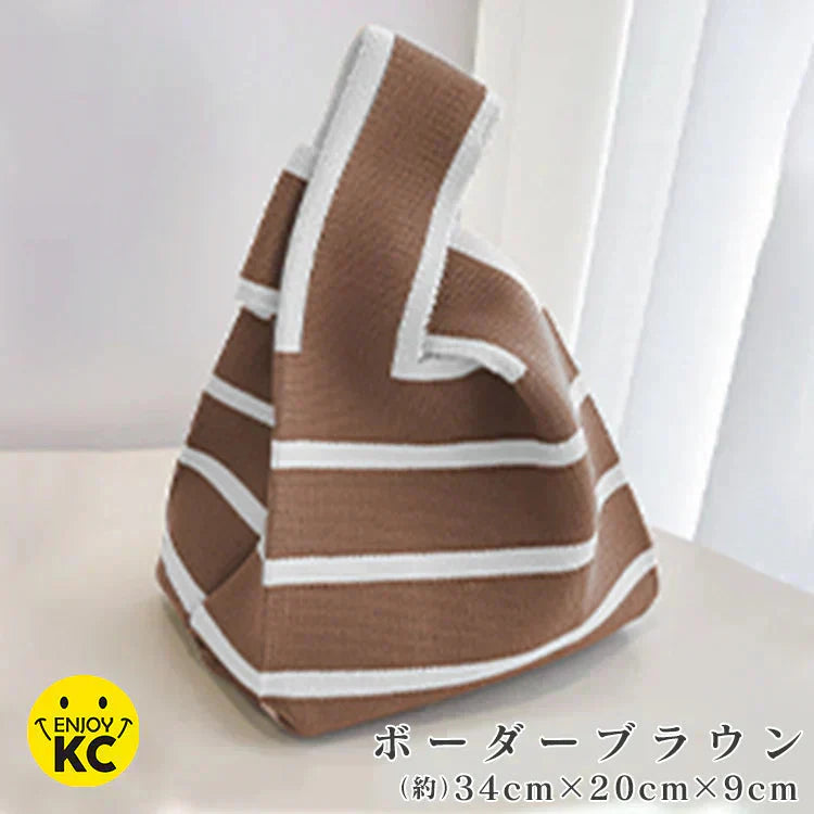 【ボーダーブラウン】SNS大人気 ニットマルシェバッグ レディース 小さめ ニットバッグ 韓国 ミニバッグ ハンドバッグ トートバッグ おしゃれ