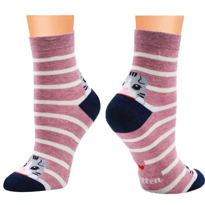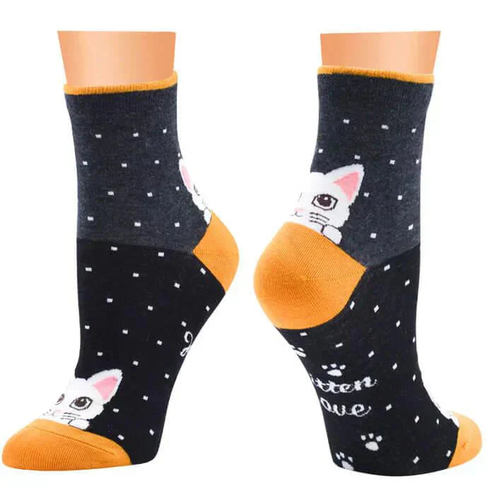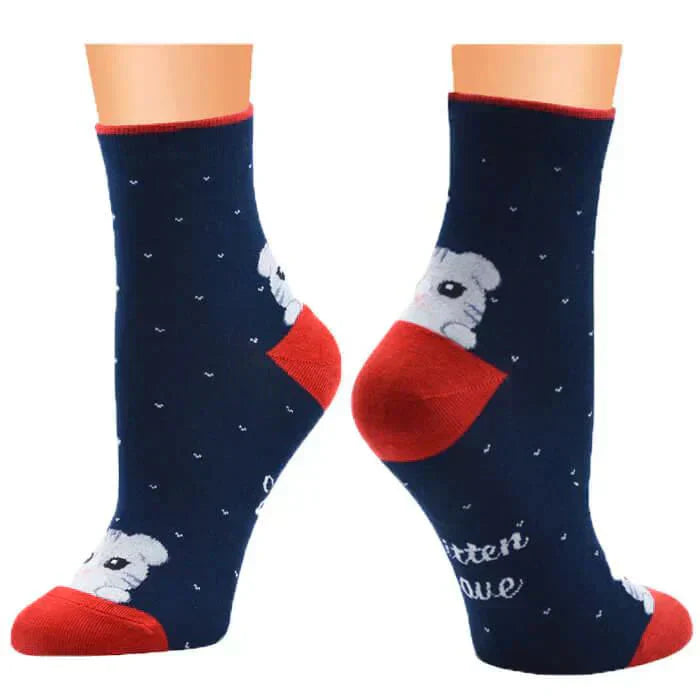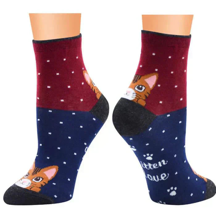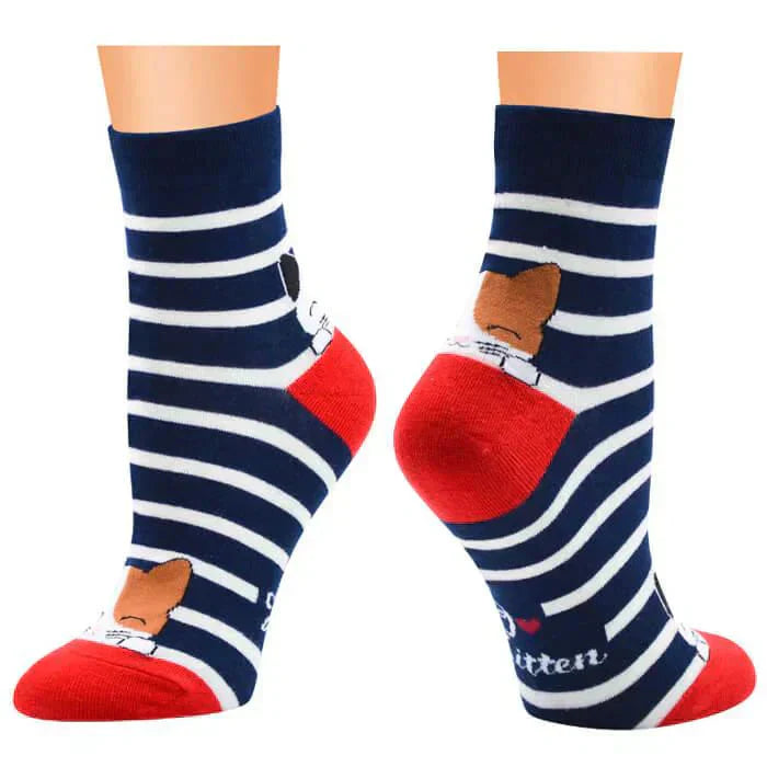 つま先と踵から顔を出す愛らしい猫のデザイン