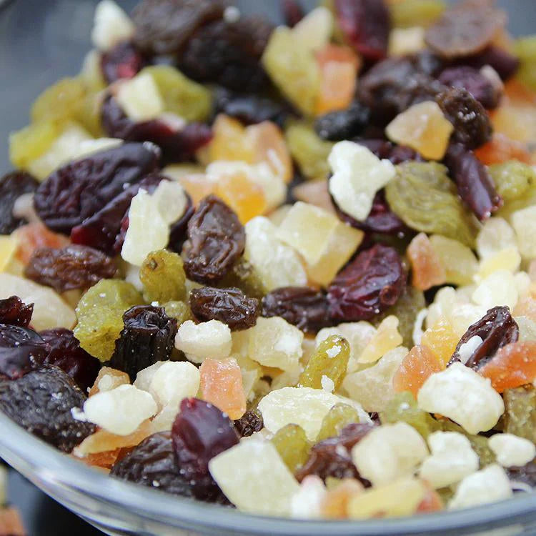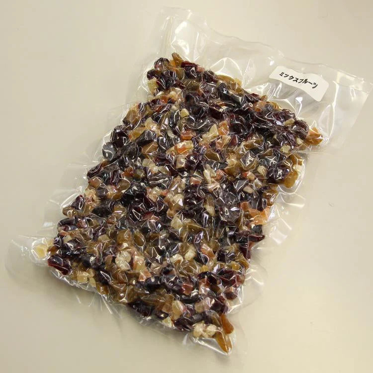【原材料】レーズン(アメリカ、中国)、糖漬けドライクランベリー(アメリカ)、糖漬けドライパパイヤ(タイ)、糖漬けドライパインアップル(タイ)、酸味料、漂白剤(亜硫酸塩)