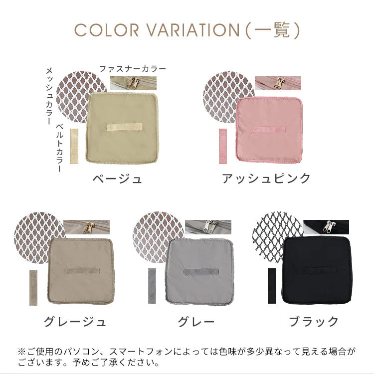 圧縮ポーチでかさばる衣類をコンパクトに収納できます。