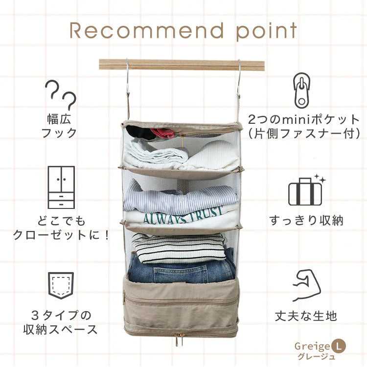 普段の収納や、滞在先のホテルなど、衣類を入れ替える手間がなく便利♪