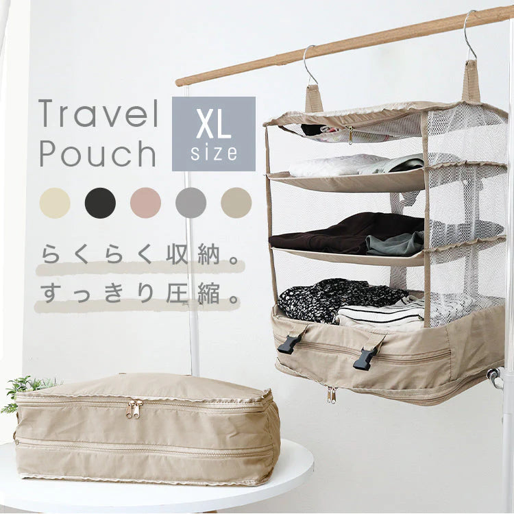 【XLサイズ】【グレー】圧縮トラベルポーチ 吊り下げ おしゃれ トラベル ポーチ バッグ 着替え 衣類ラック 収納 かわいい 大きい 旅行 出張 修学旅行 トラベルバッグ インナーバッグ 整理 圧縮バッグ 圧縮ポーチ 圧縮トラベルポーチ 収納ポーチ 収納圧縮袋 圧縮袋