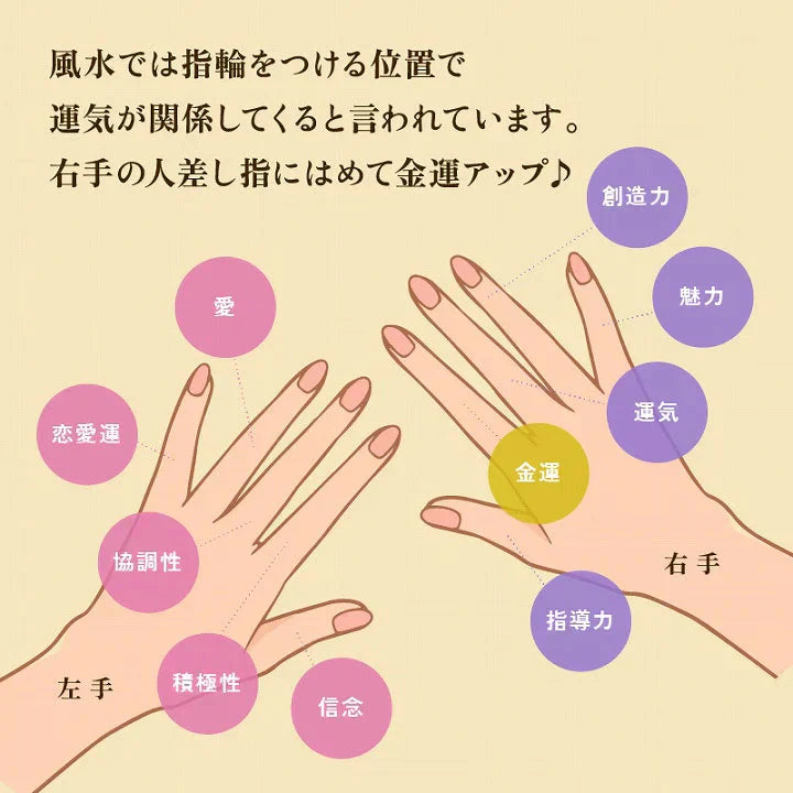 右手の人差し指にはめて金運アップ!サイズ調整可能なので度の指にもフィット。