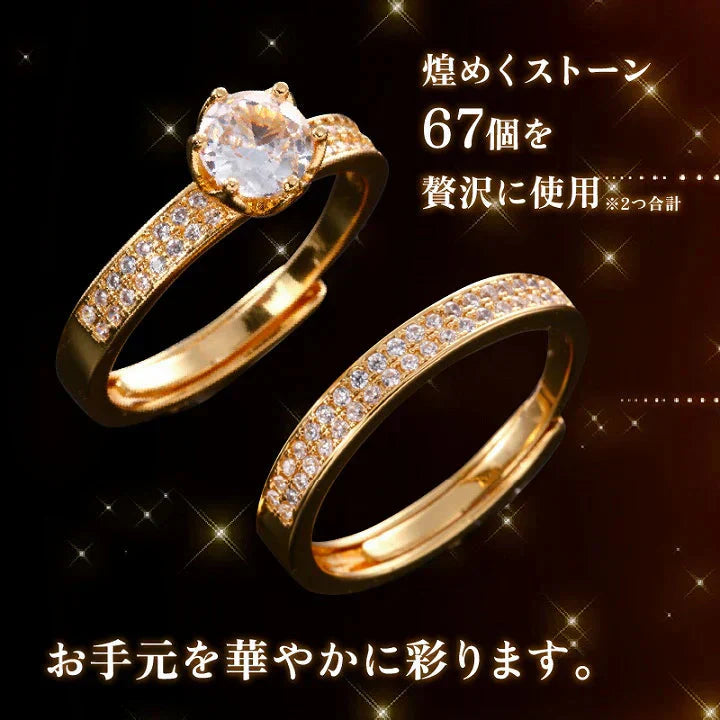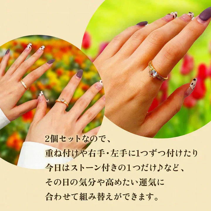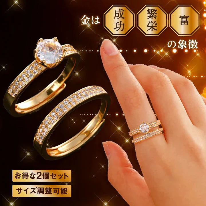 プレミアムラッキーリング(2個組) 指輪 レディース ゴールドリング 開運 金色 金運 幸運 運気アップ 成功 金運アップ 財運 開運 願望成就 フリーサイズ 8〜18号 調節可 金運の象徴 ゴールドカラーのリング サイズ調整可能 きらめくストーン 開運グッズ アクセサリー 指輪 パワーストーン 占い ブレスレット おすすめ ランキング ジルコニア