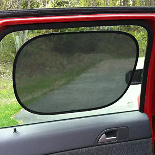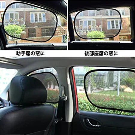 【吸盤なしカーシェード4枚セット】ドライブの必需品!窓にペタッと貼るだけの簡単装着。吸盤不要でズレにくい!紫外線カット・日差し対策に最適。前後左右の窓に対応、コンパクト収納で持ち運びも便利!