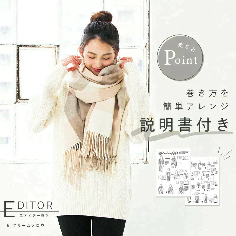 【6クリームメロウ】【商品名:大判なめらかストール】