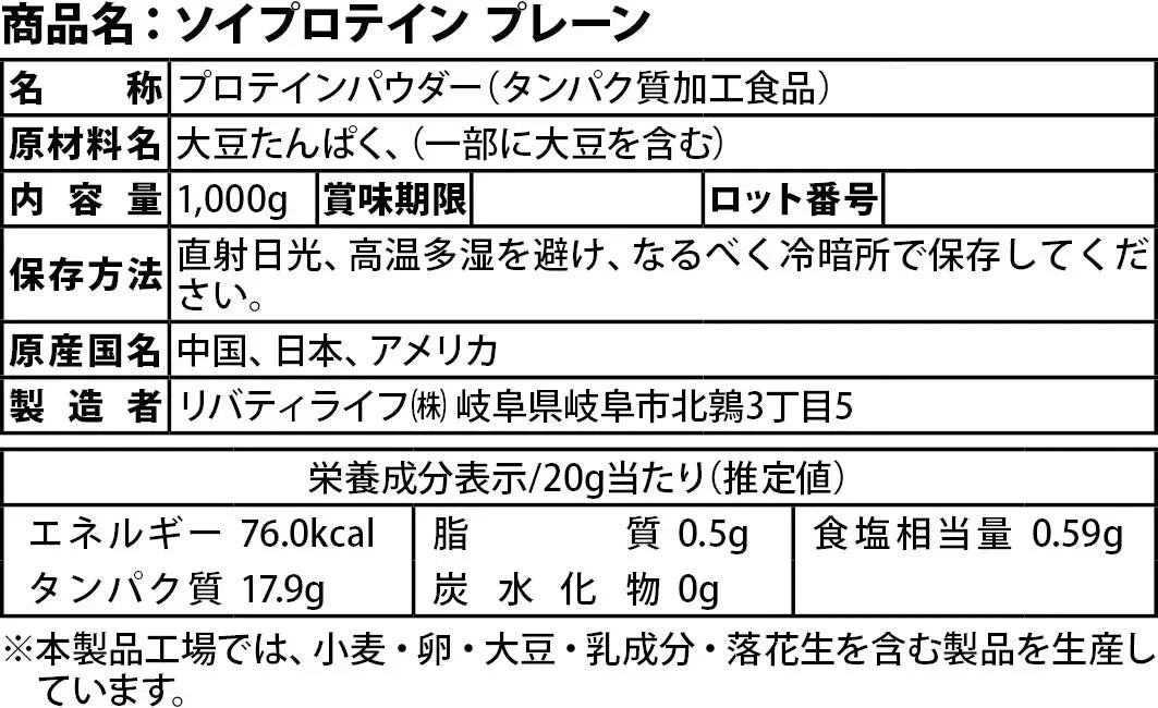 商品名・ソイプロテイン プレーン