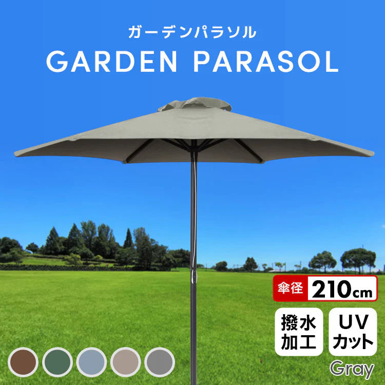 【グレー】ガーデンパラソル 210cm パラソル アルミ UVカット ビーチパラソル 傘 ガーデン オープンカフェ ガーデニング カーデンファニチャー 庭 テラス ベランダ ビーチ キャンプ 日傘 折りたたみ 日よけ