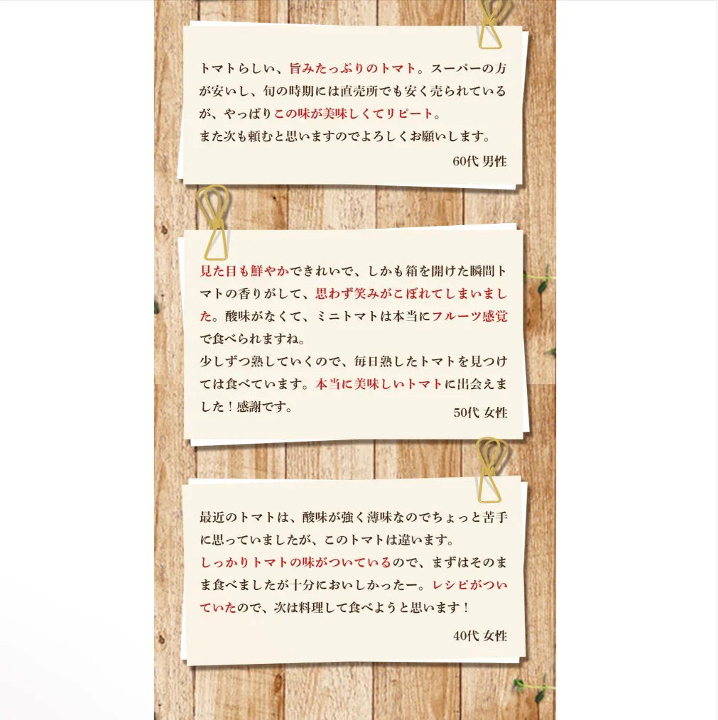 トマトで笑顔の食卓を囲んで頂きたいという思いで楽しく農作業をしている農家からのお届けものです。
