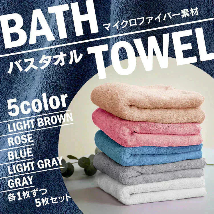 【各色1枚5枚セット】バスタオル 大判 マイクロファイバー 吸水速乾 速乾タオル 無地 時間短縮