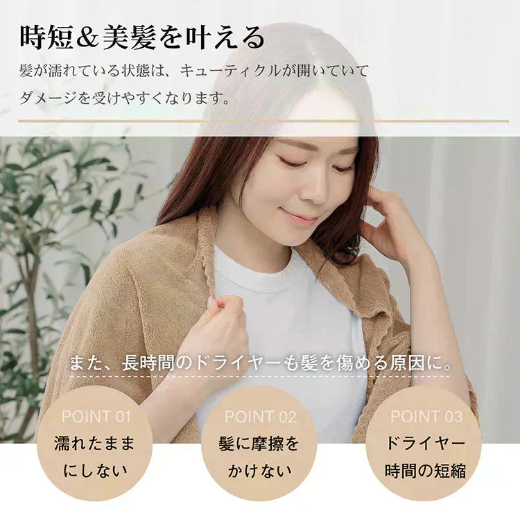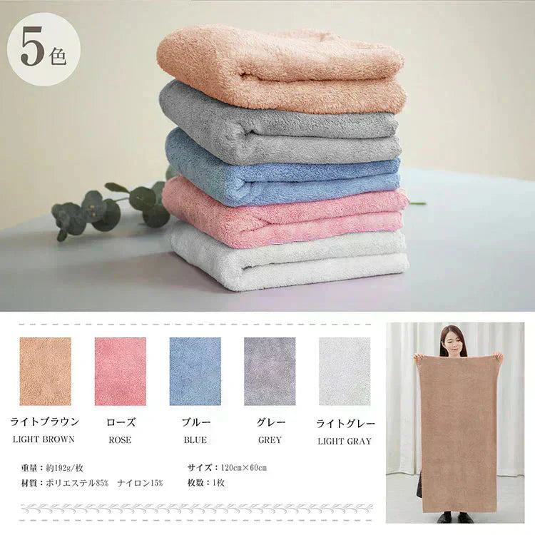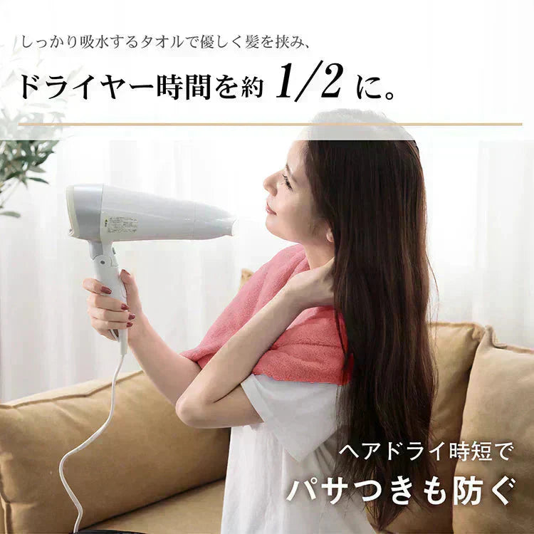 ・強力な吸水性で体の水分をしっかり拭き取り、ドライヤーの時間を短縮。忙しい朝の味方です。