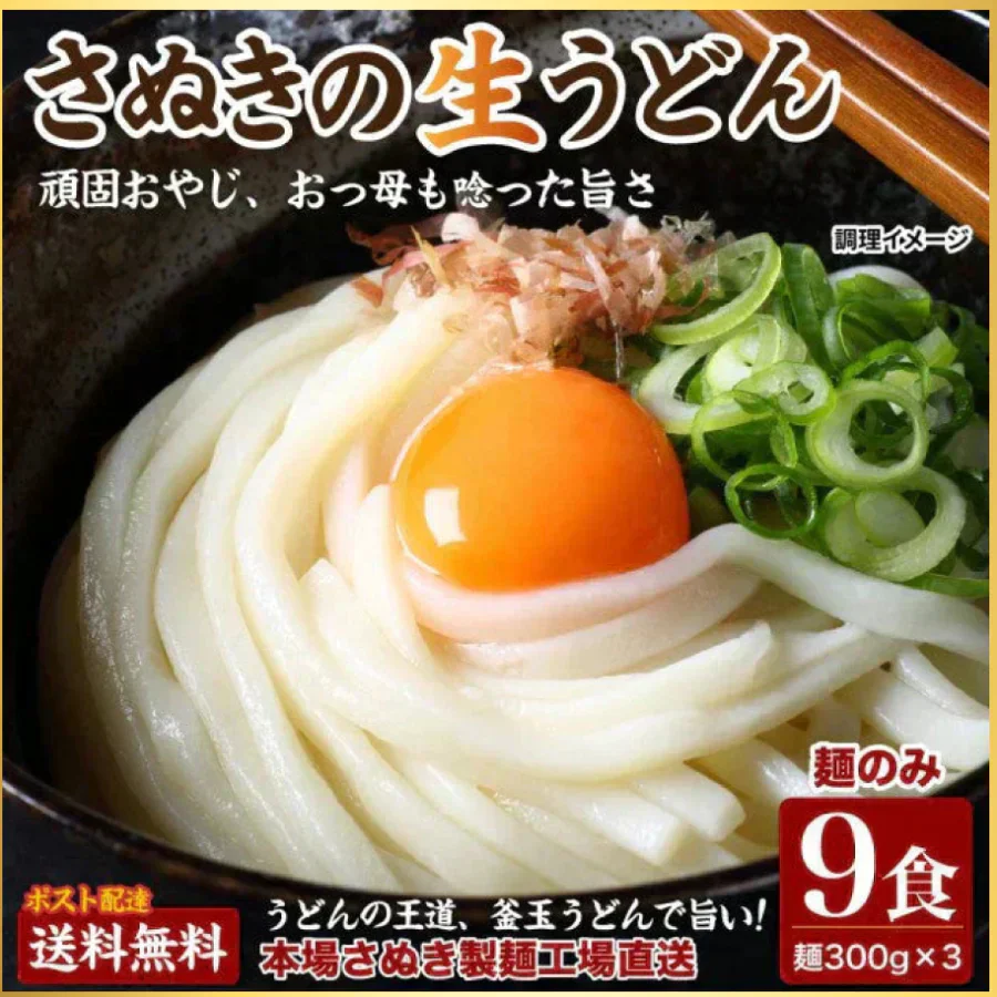 頑固父さんが唸る讃岐生うどん 【普通麺】 9食セット (麺300g×3袋 ) 送料無料 香川県 産地直送 お試し フード おすすめ グルメ食品 人気 ポスト投函 お取り寄せ おつまみ