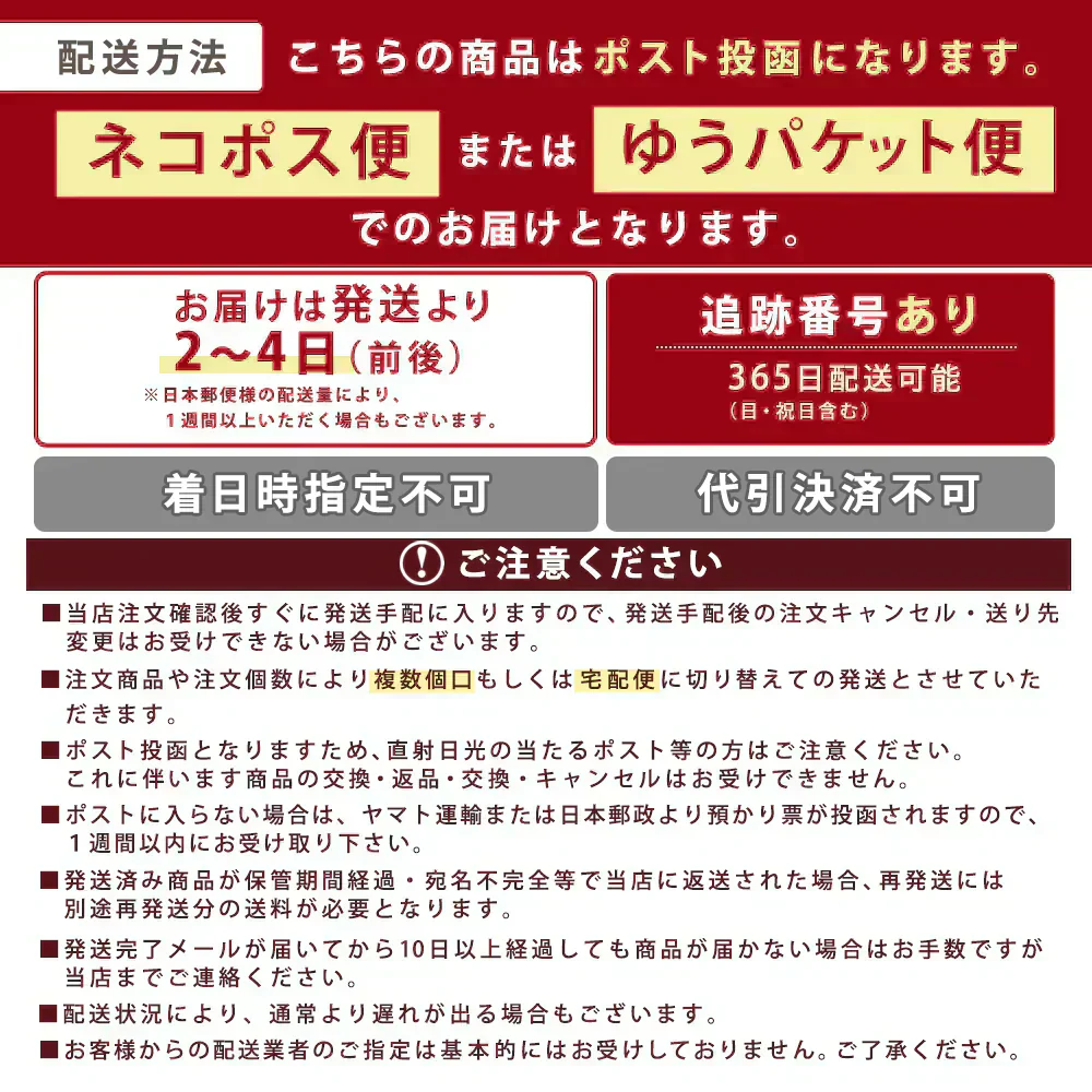 【お届けについて】送料無料ゆうパケットでの配送の為、日時指定はご遠慮頂きます。