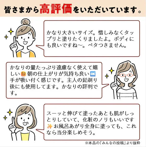 お肌への浸透性・保湿性が高く、うるおいを与えます。