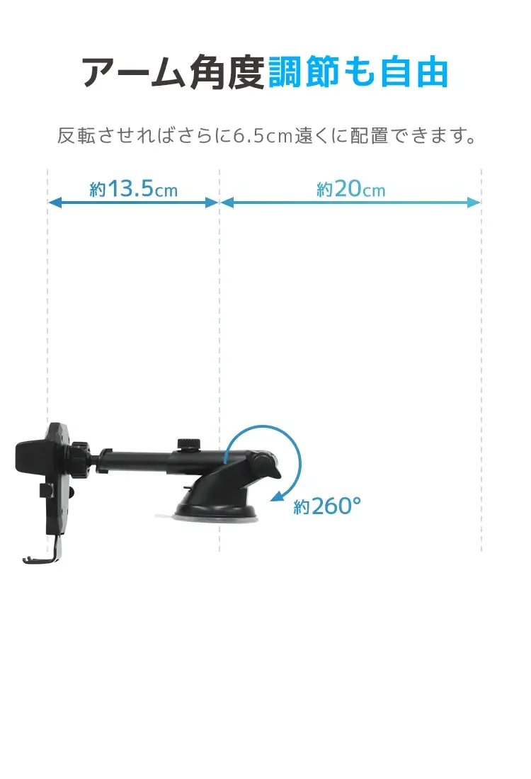 最大5cmの伸縮アーム搭載で、奥行きを自由に調節可能。