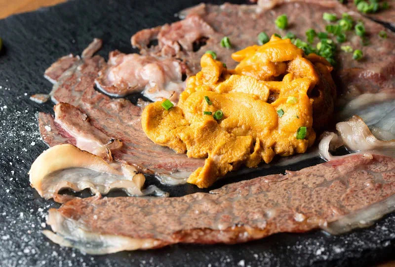 その他にもお寿司の軍艦巻きやそのまま食べる雲丹刺しもよし、お肉の上にのせて贅沢なうにくもをお楽しみいただけます。またクリームパスタの上に乗せるだけでも美味しくいただけます。