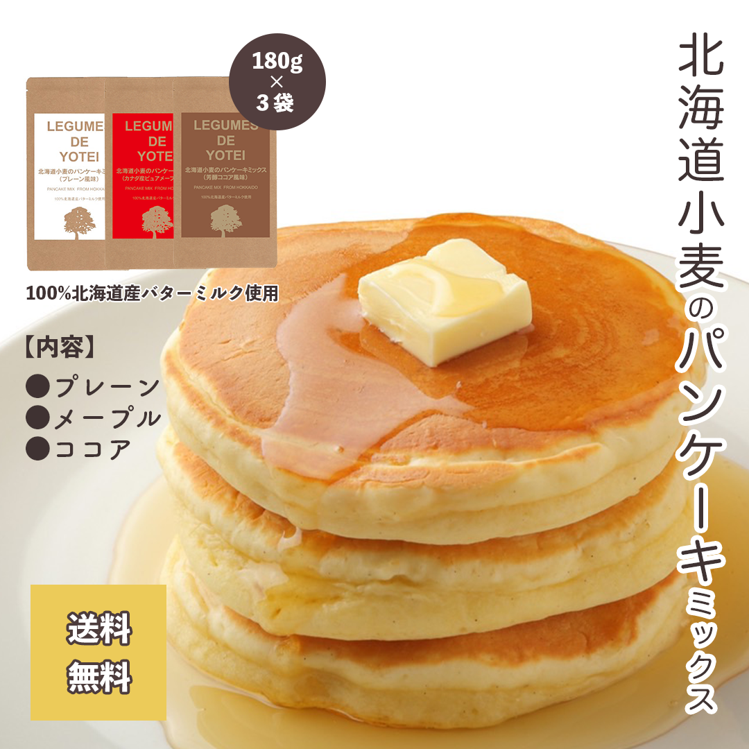 【3人シェア買いでお得】【送料無料】3つの味が楽しめる北海道小麦のパンケーキ (プレーン・メープル・ココア)180g×3
