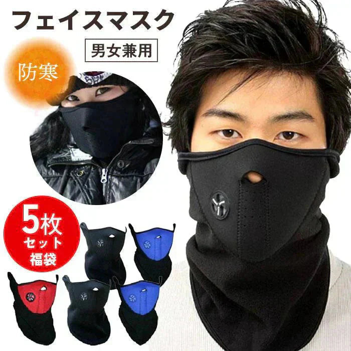 【予約商品・発送時期は商品説明に記載】防寒 フェイスマスク 5枚 セット 福袋 ネックウォーマー フリース 防寒 マフラー スキー スノーボード 風除け バイク 通学 通勤 秋 冬 送料無料 ギフト プレゼント