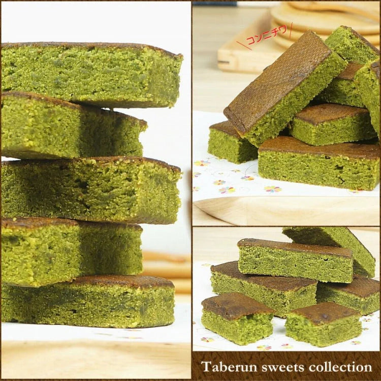 原材料名:砂糖(国内製造)、卵白、マーガリン、小麦粉、加糖卵黄、水飴、蜂蜜、抹茶(碾茶)、チョコレート、牛乳/乳化剤、香料、(一部に卵・乳成分・小麦・大豆を含む)