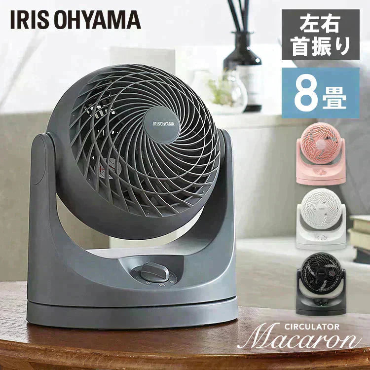 【グレー】サーキュレーター 8畳 首振り マカロン型 PCF-MKM15-H 暖房効率 パワフル 大風量 喚気 節電