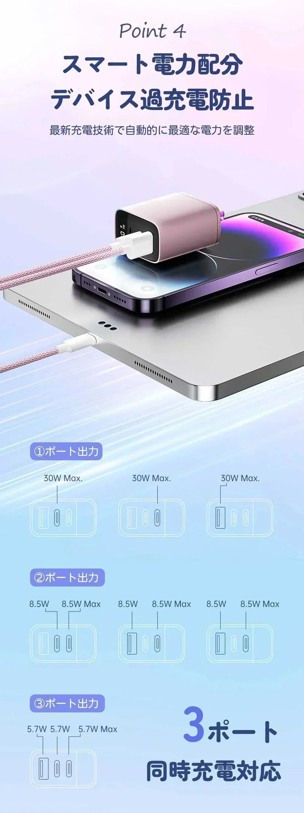 ★さらに、2024年の人気カラーを取り入れたデザインで、あなたのデバイスをスタイリッシュに充電。