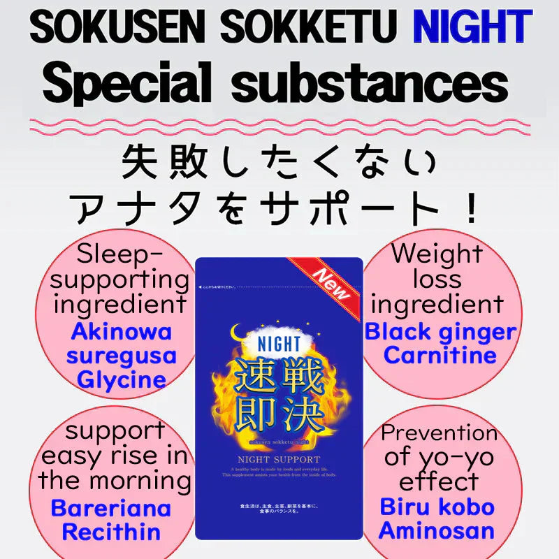 【NEW速戦即決 ナイト】リニューアル版 寝る前 専用 ダイエットサプリ ナイト ダイエット サプリメント 睡眠 スリム 寝ながら 燃焼 ダイエットサポート 激やせ 短期 減量 快眠 スッキリ 寝るだけ ダイエット カルニチン ブラックジンジャー グリシン アミノ酸 BCAA 日本製 夜 おすすめ 人気 ランキング 効果 強力 最強 バレリアナ ビール酵母 マグネシウム レシチン カルシュウム 休眠 休息 リラックス ストレス サポート 健康 オススメ ランキング