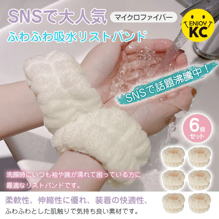【アイボリー 6個セット】 吸水リストバンド 6個入 お得リスト アイボリー バンド アームバンド 手首バンド 吸水ウォッシュバンド 袖濡れ防止 マイクロファイバー ふわふわ 柔らかい タオル 伸縮性