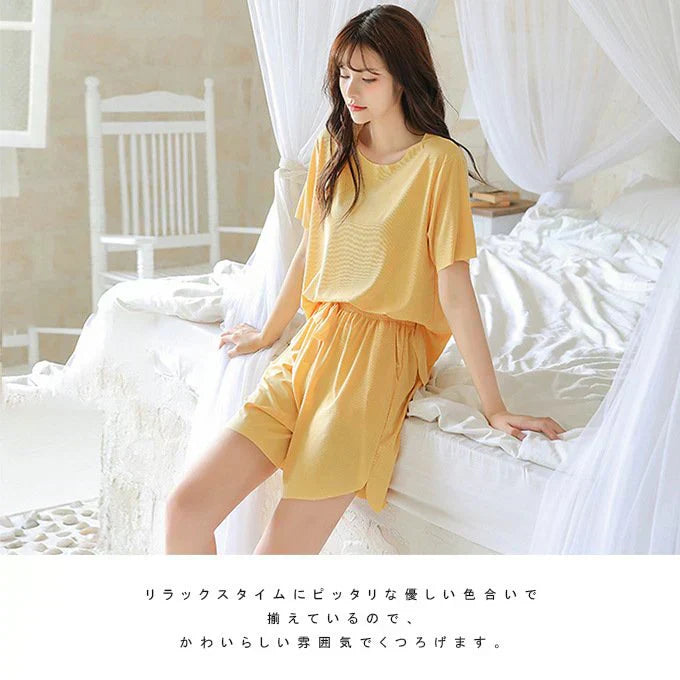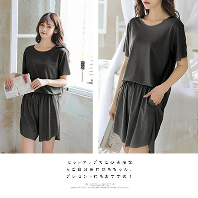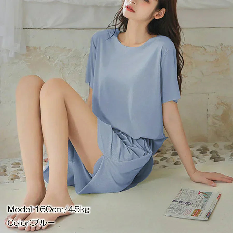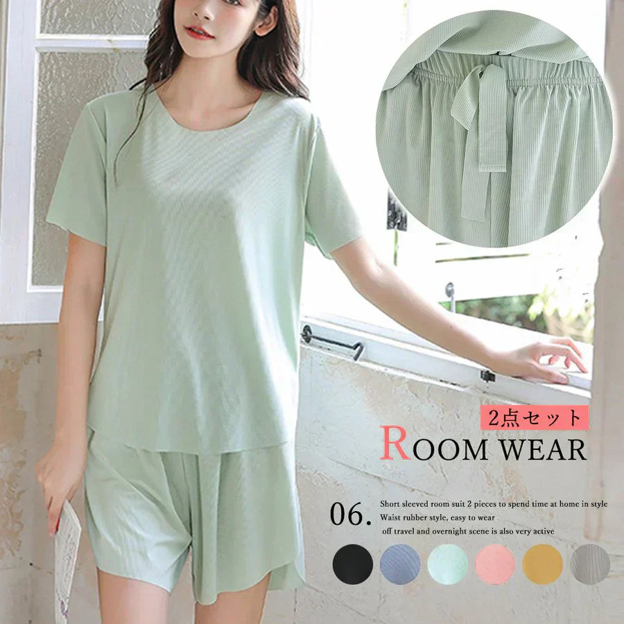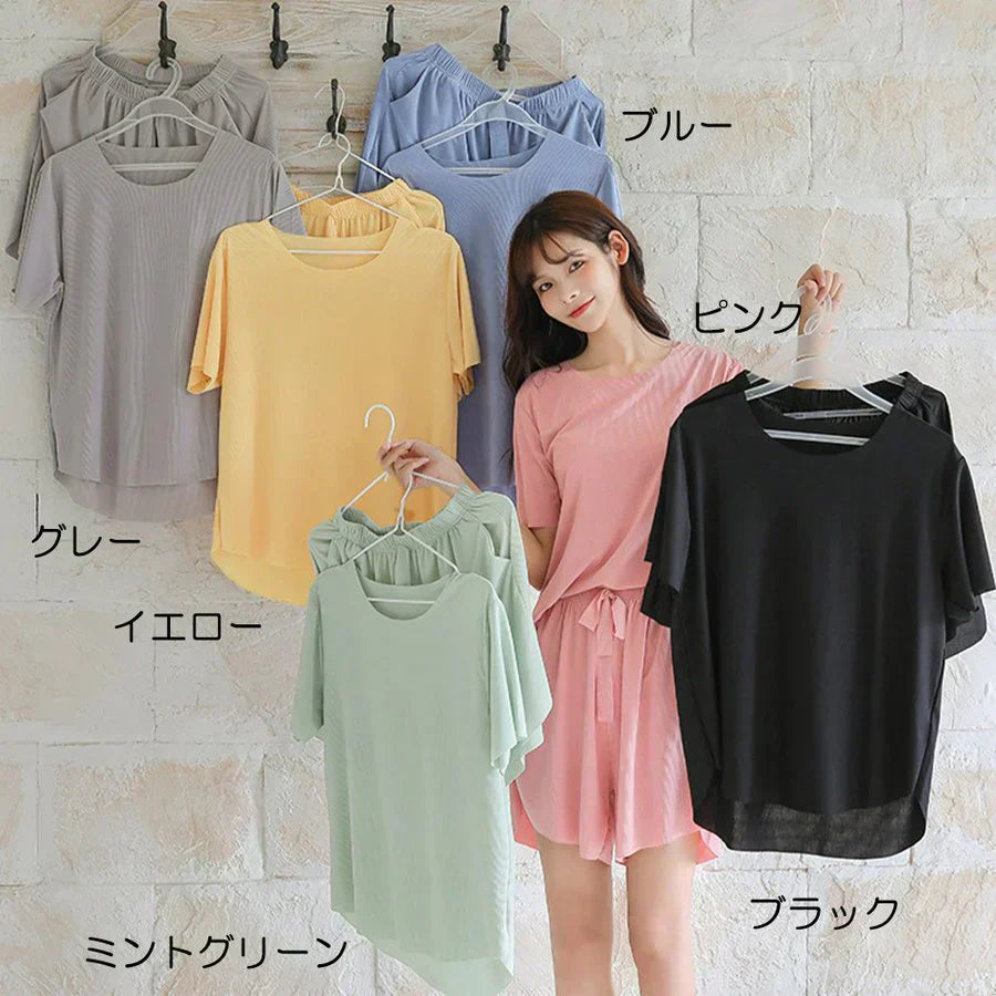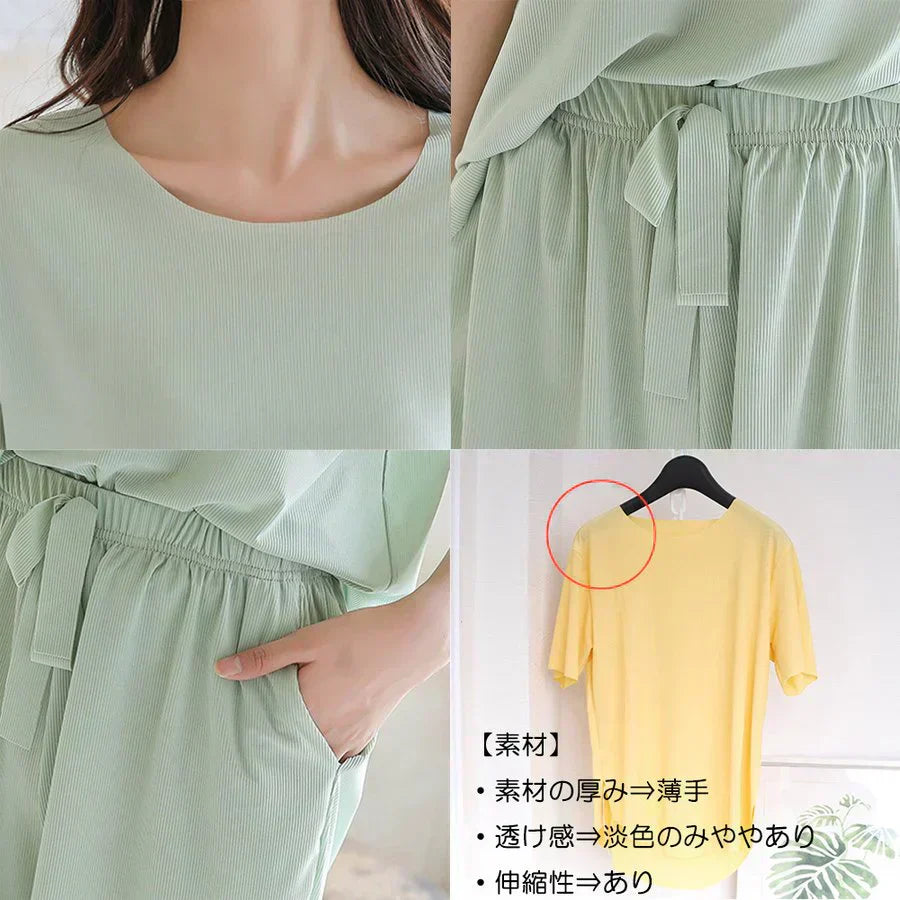 「送料無料 ミントグリーン 接触冷感 」ルームウェア 接触冷感 セットアップ リラックス インナー 半袖トップス インナーウェア ゆったり 送料無料