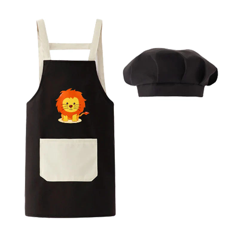 可愛いキャラクターがプリントされたエプロンに、帽子が付いたお得な2点セット!家事のお手伝い、給食や家庭科の授業、図画工作などの作業着にも使えます。上からスポッと被るH型デザインだからお子様自身で着脱できます。体型に左右されにくく後ろの腰紐を結ぶだけですので簡単です。大きな前ポケットに布巾やペンなどの小物がたくさん入れられて便利です。ポリエステル生地だから油や水汚れ・洗濯に強く、長く使えます。通気性にも優れているのでサラサラで快適です。名前やクラスが書けるタグ付き。商品名:エプロンと帽子のセット,内容物:エプロン1枚、帽子1枚,対象年齢:男女兼用 5-11歳,生地:ポリエステル,サイズ(身長目安):120(110cm,120cm,130cm)、140(130cm,140cm,150cm)(全2種),柄:ウサギピンク、パンダイエロー、マウスグレー、ブラックライオン(全4種),※お腕カバーをご希望の方は+220円でまとめ購入可能。※お客様のモニター環境によっては、実際の色と多少異なる場合がございます。※サイズ測定は手作業で行っていますので、±1?2cmほど誤差が生じる場合がございます。