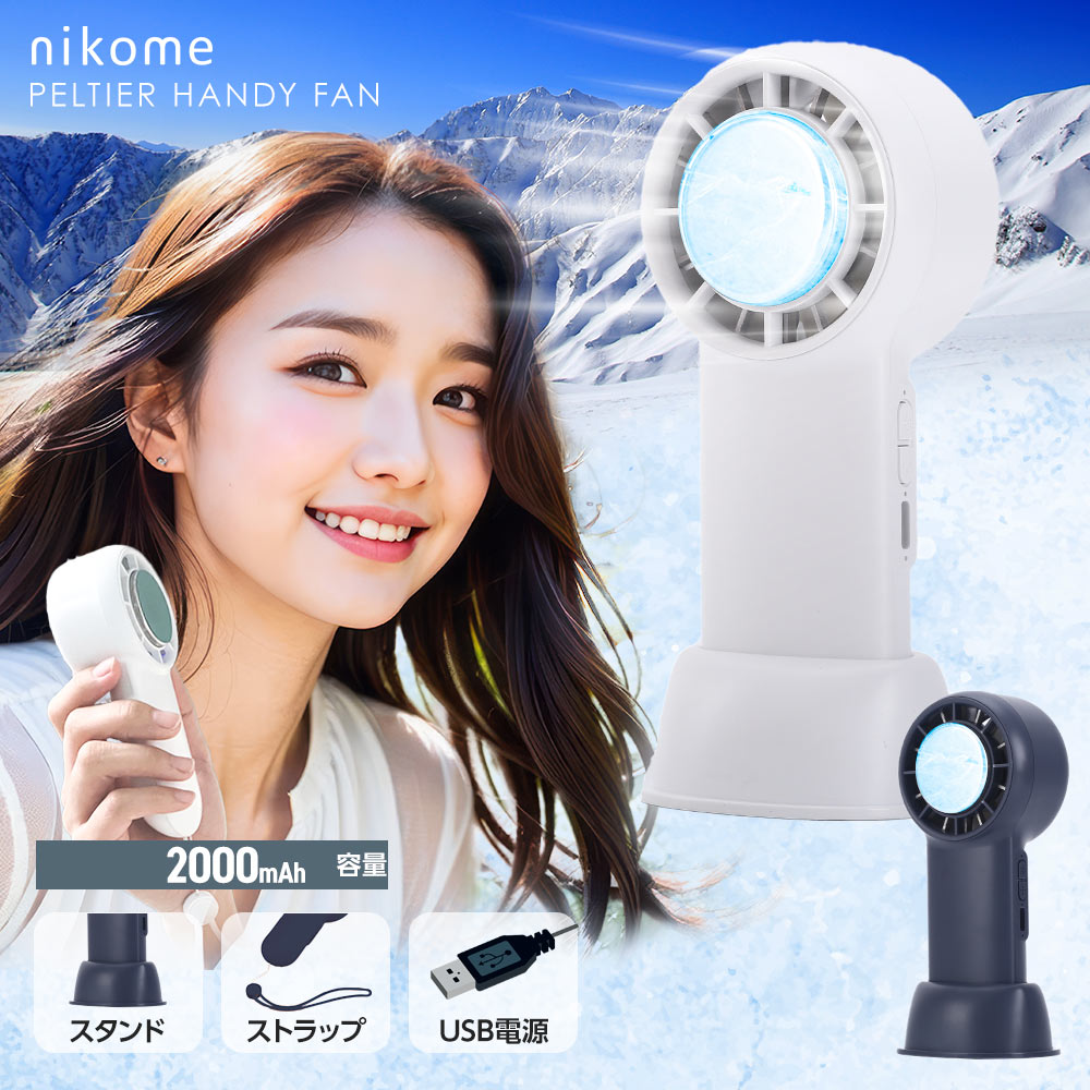 [ホワイト]扇風機 熱中症対策に!! 3段階風量 手持ち扇風機 ペルチェハンディファン nikome ニコメ NKM-PHF01