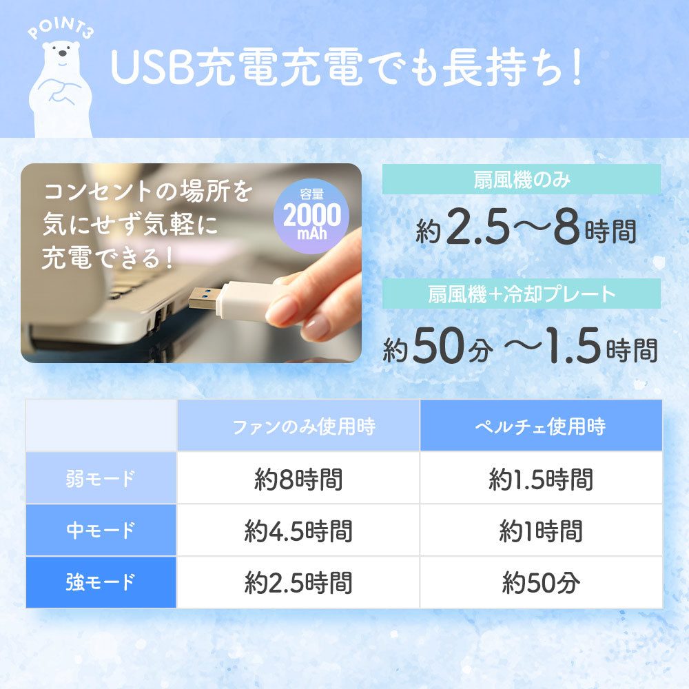 使用時間 :ファンのみ / 約2.5?8時間(使用環境によって異なります)