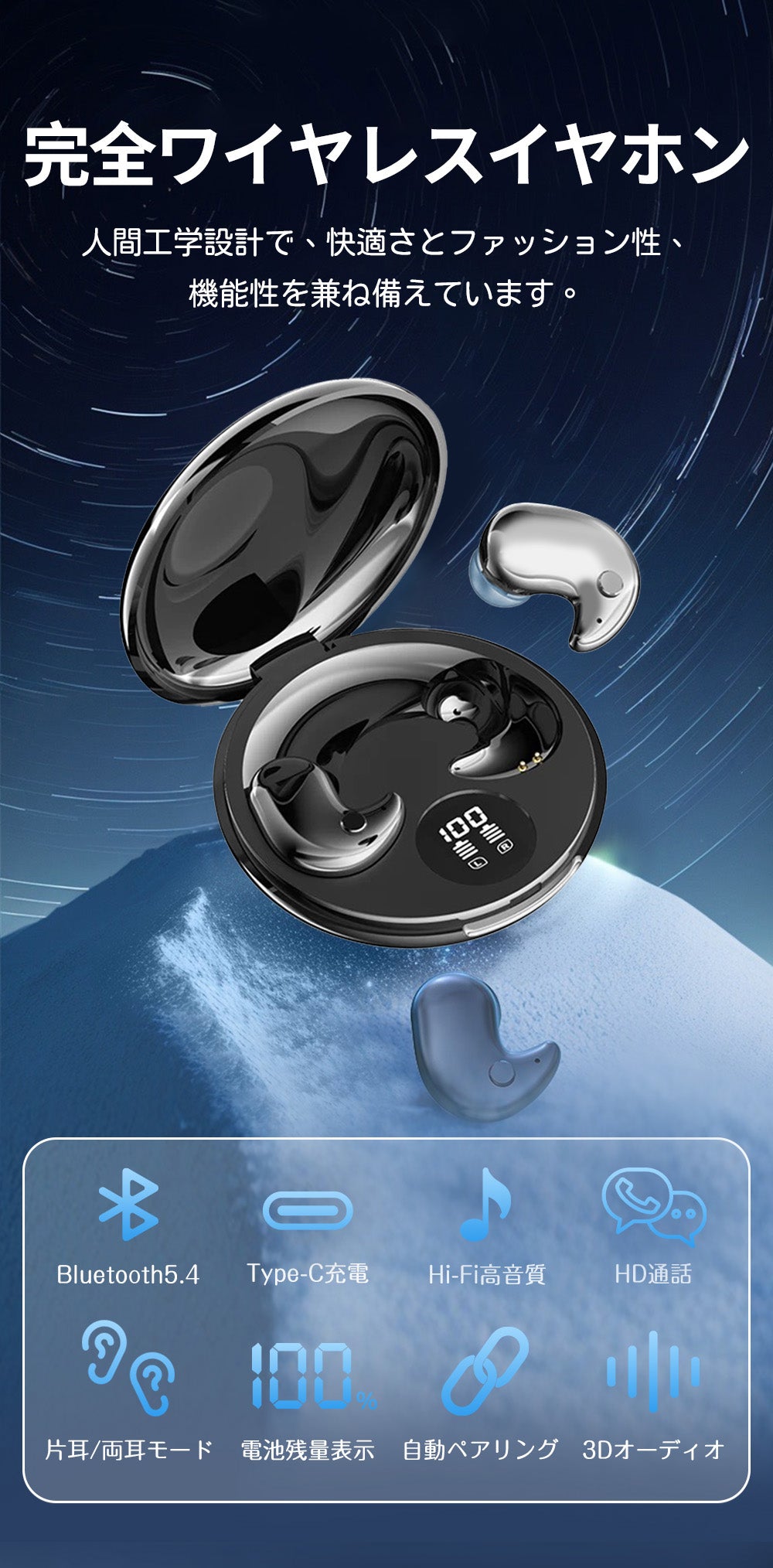 【Bluetooth 5.4で安定した接続】\ブラック/ブルートゥースイヤフォン ヘッドフォン イヤホン bluetooth マイク 耳栓 イヤフォン ワイヤレス iphone イヤホン ヘッドホン 受話器 ヘッドホーン レシーバ レシーバー イヤピース ワイヤレスイヤフォン インイヤーモニター 片耳 両耳 左右分離型 イヤホン