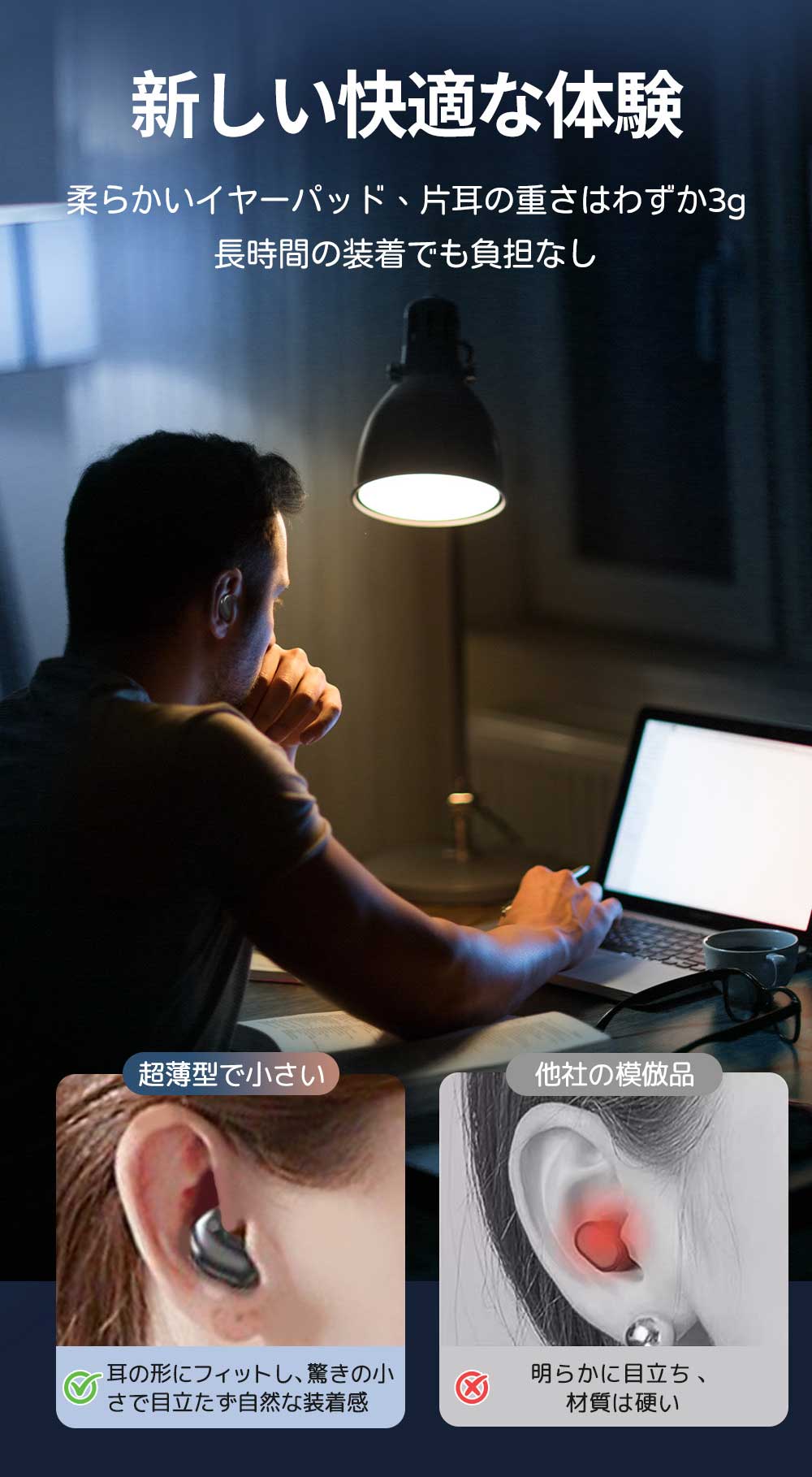 わずか39gの軽量ボディで、寝返りを打っても気にならず、ストレスフリーな使用感を提供します。