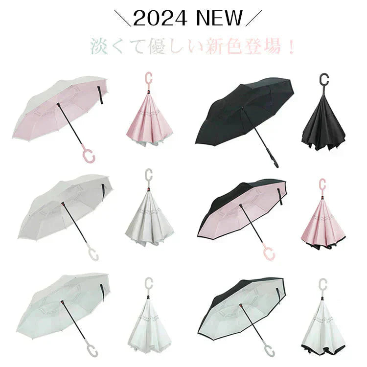 \2024新色追加/「オフホワイト×ブラック」 傘 逆さ傘 ボタン式 日傘 晴雨兼用 折り畳み傘 プレゼント 遮光 梅雨 雨 レディース メンズ 逆傘 日焼け UVカット 雨傘 紫外線 熱中症