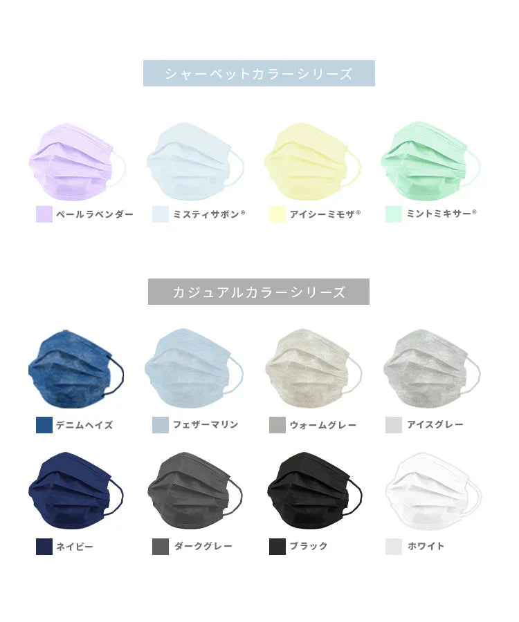 平紐で耳が痛くなりにくく、華やかなカラーで顔色がぱっと明るくみえる、おしゃれな血色マスクです。