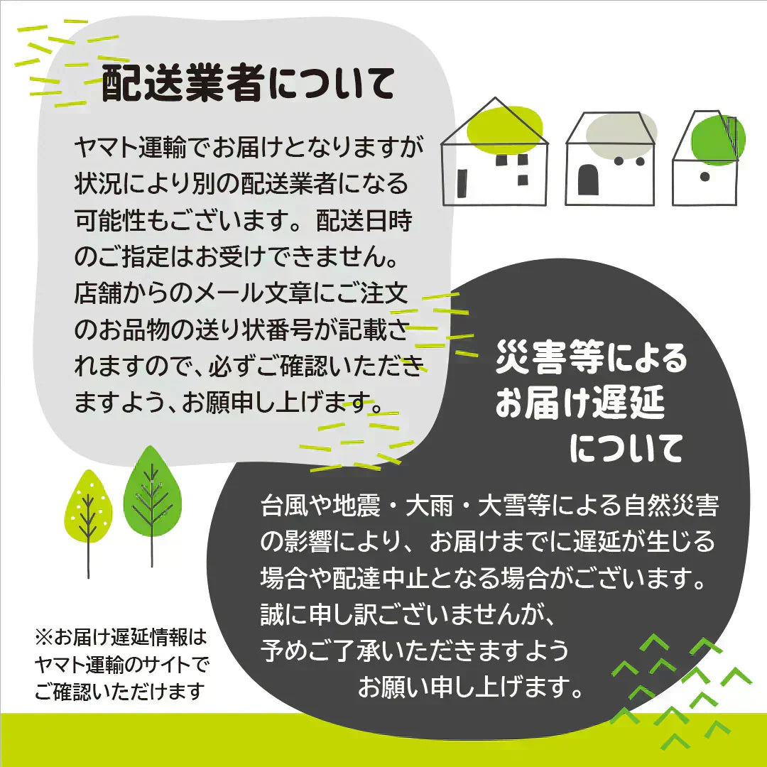 ●長期不在や住所確認等により配送業者との連絡がつかない場合、配送業者の保管期限を過ぎたお荷物を受け取ることができなくなります。ご注文時は必ず日中に連絡がとれるお電話番号をご入力ください。