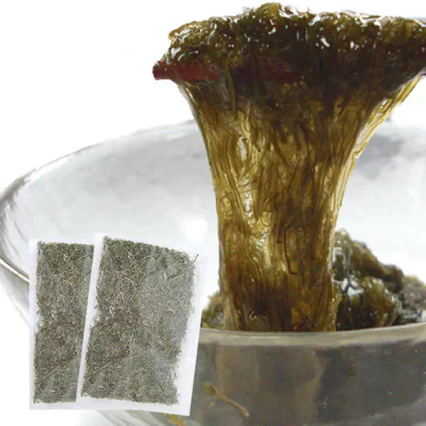 〇お召し上がり方:適量を小鉢に入れて水を加えて軽く混ぜ、三杯酢などで味付けしてお召し上がりください。