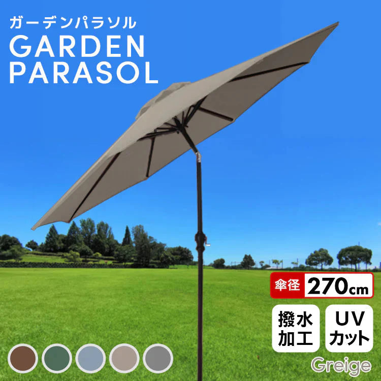 【グレージュ】ガーデンパラソル 270cm 傾く パラソル アルミ 傾くパラソル UVカット チルト機能 ビーチパラソル 傘 ガーデン ガーデニング カーデンファニチャー 庭 テラス ビーチ キャンプ 日傘 折りたたみ 日よけ