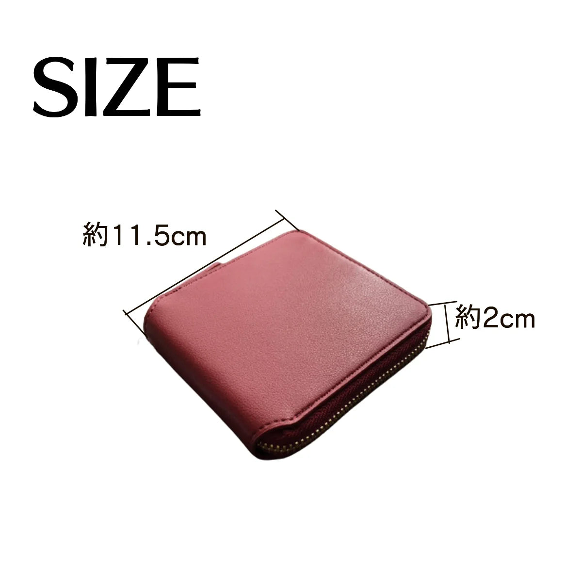 【ワインレッド】スクエア 四角 財布 ラウンドファスナー コンパクト 飾りチャーム無し