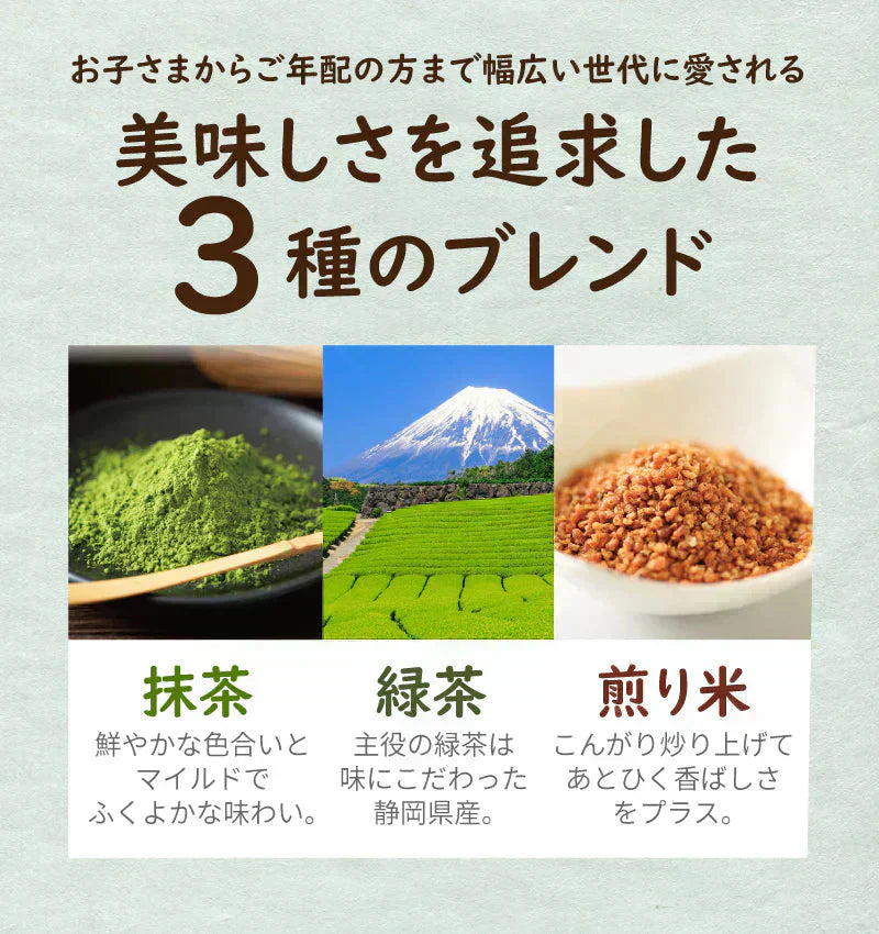 原料(原産国):緑茶・米〔煎り米〕・抹茶(国産)